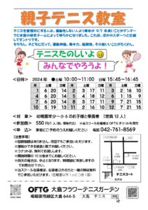 『親子テニス教室』はご好評につき、2024年は月に3回開催します。 ぜひご参加ください。